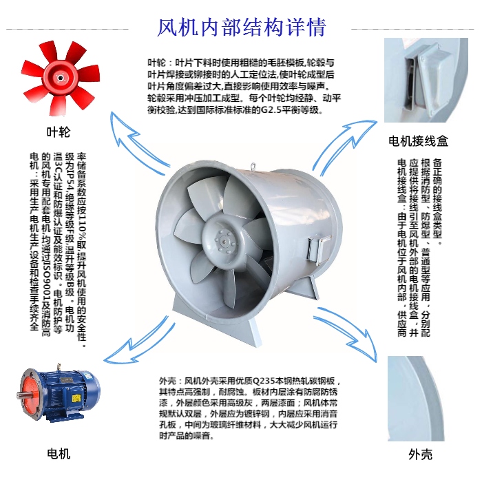 1、氣流脈動多引起風機機殼、進出口管道及機殼基礎振動,對軸承及轉子機械振動的影響較小,起振頻率主要為與轉子主頻無關的低頻成分。3、當屋頂軸流消防排煙風機動葉或靜葉磨損、破裂產生氣流脈動時,其氣流脈動會與機械振動相耦合,此時屋頂軸流消防排煙風機的氣流脈動故障頻率中會出現較大的葉片通過頻率及其諧波,且軸承及轉子也會出現故障頻率。